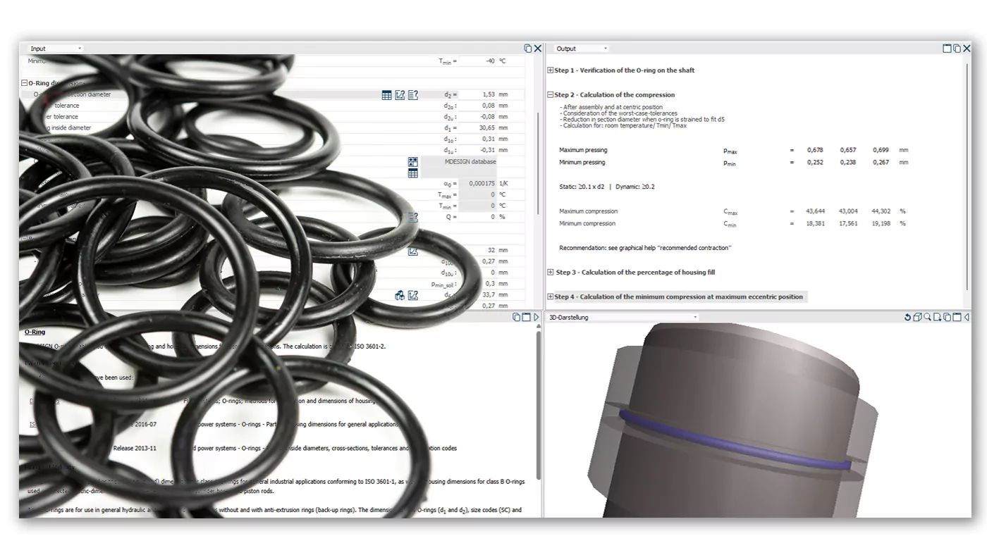 通过 MDSIGN mechanical 系列中全新的 MDESIGN "O型圈"模块,您可以依据 ISO 3601-2 标准简单、精确地计算几何形状、安装空间和沟槽填充率,并针对您的应用进行优化。