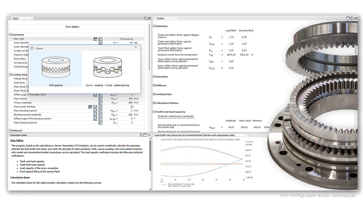 凭借全新的 MDESIGN "端面花键"模块,可以快速精确地确定花键(包括 Hirth 齿、Couvic-Coupling 以及摆线齿)的几何形状、局部齿根应力并进行强度验证,适用于中心及非中心螺栓连接。